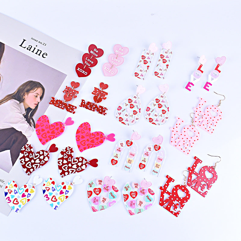 Wholesale Valentine' s Day Love Letter Red Pink Acrylic Earrings