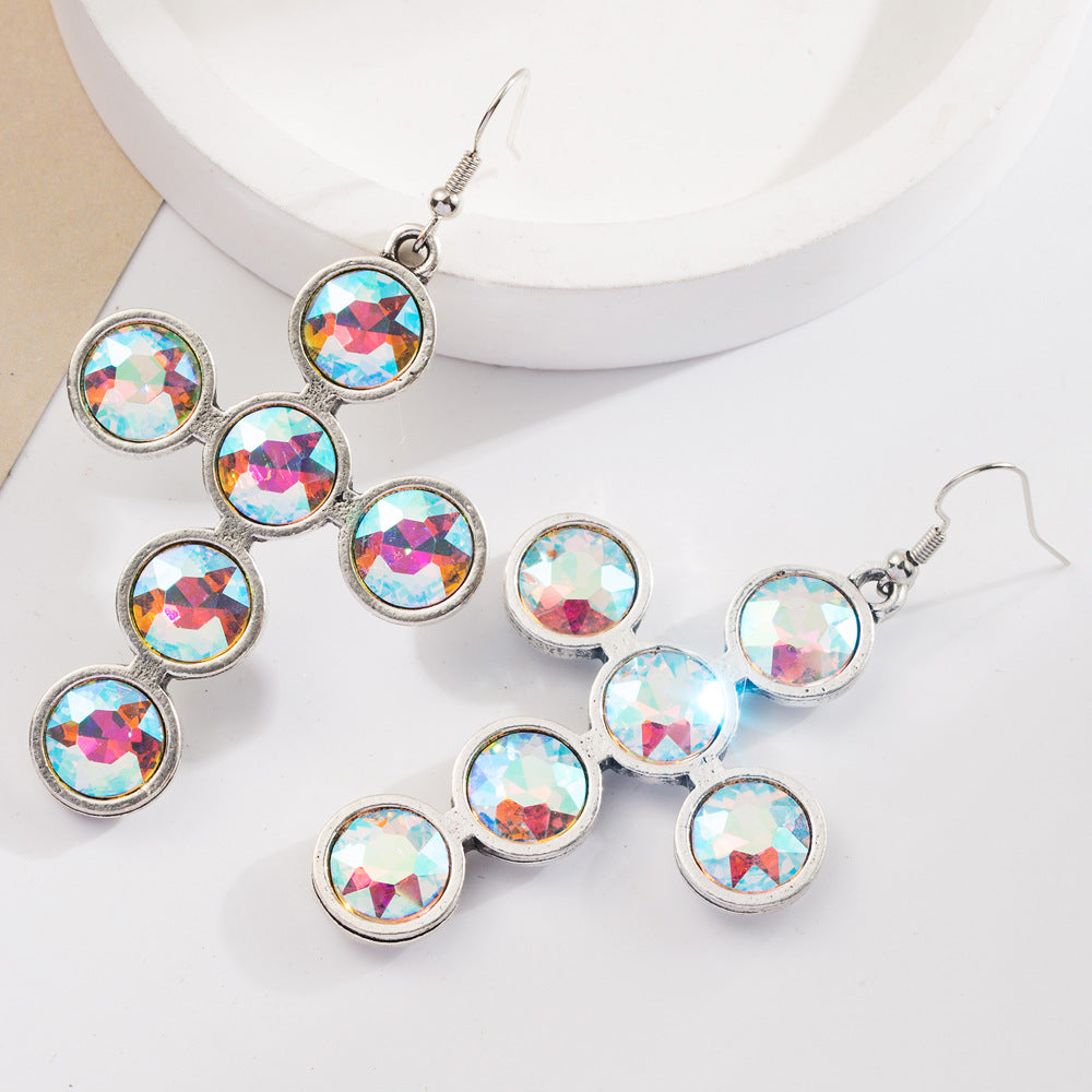 Wholesale Turquoise cross exaggerated earrings bohemian style earrings