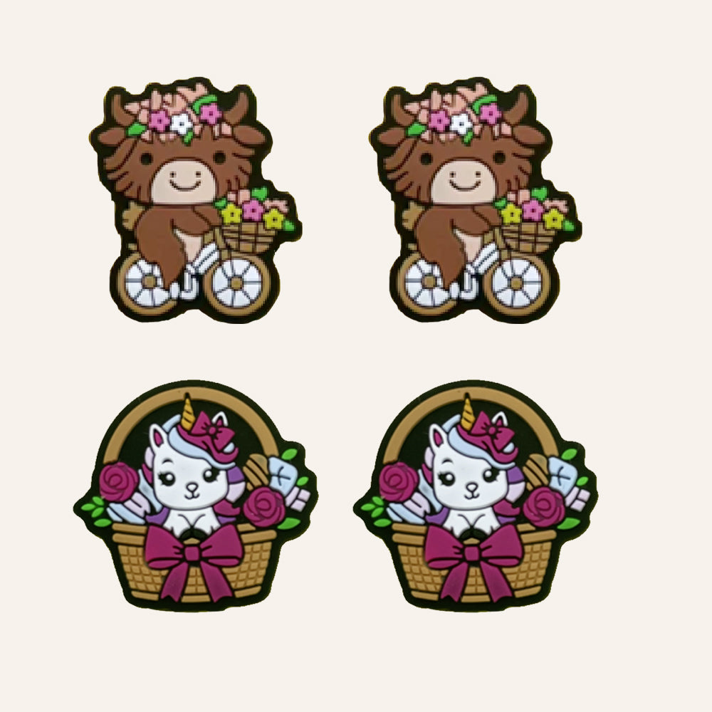 Wholesale 10pcs Printed Creative Color Cow and Deer Printed Silicone Beads