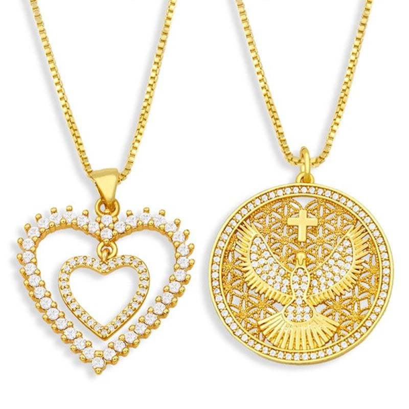 Venta al por mayor Collar Cobre Chapado en Oro de 18K Forma de Corazón Hueco Paloma de la Paz OLY-NE-AS006
