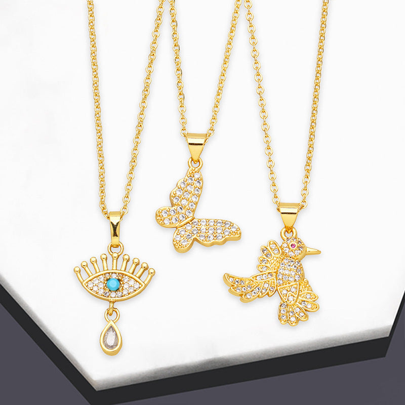 Venta al por mayor Collar Cobre 18K Oro Zircon Mariposa Diablo Ojo OLY-NE-AS008