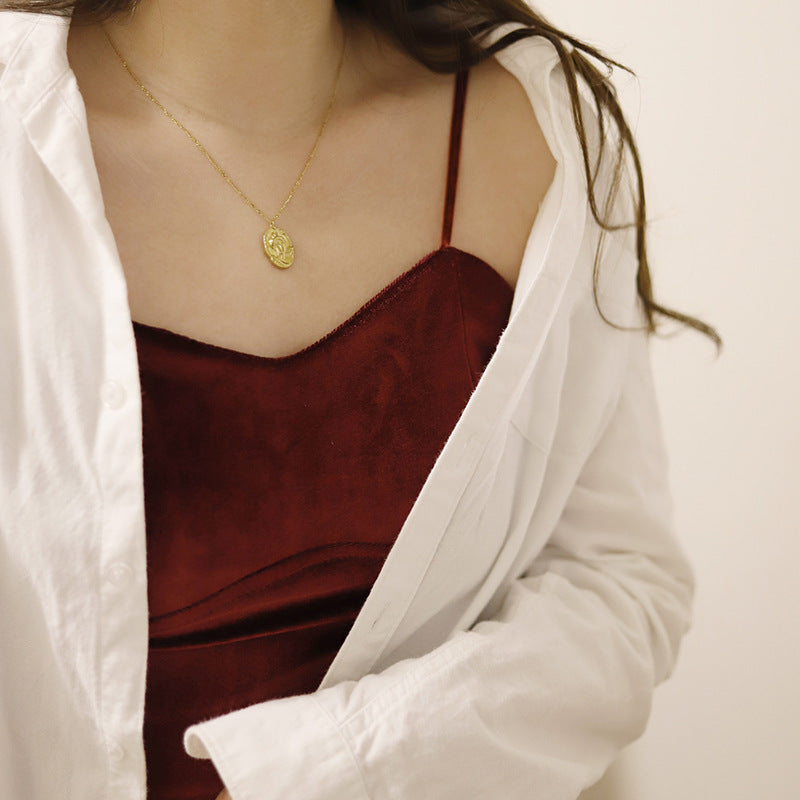 Venta al por mayor Collar de acero de titanio con cabeza de dama de retrato