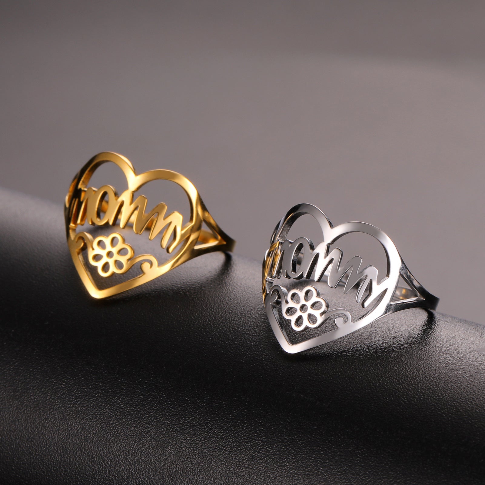Wholesale Mother's Day Stainless Steel Love MOMMY Open Heart Rings