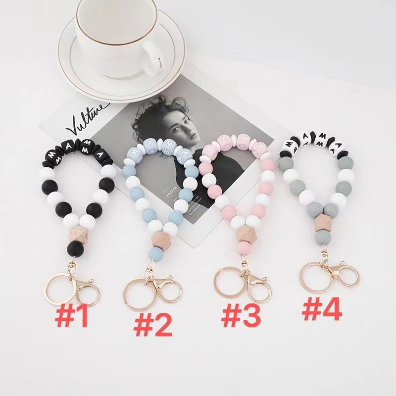 Wholesale 10PCS Square Letter Round Silicone Beads Keychains