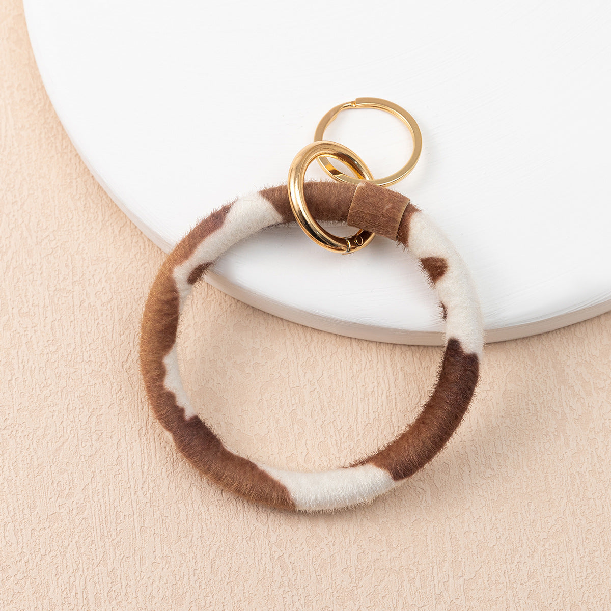 Wholesale Plush Cow Patterned Leather Wrist Keychain