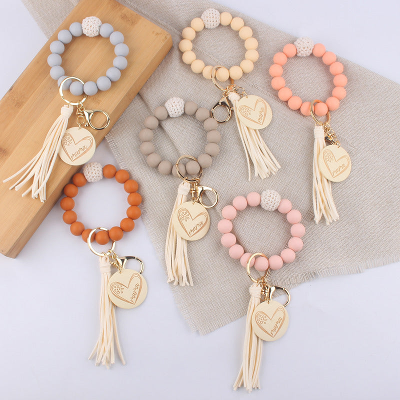 Wholesale Solid Color Silicone Beads Handmade Tassel Wrist Keychain