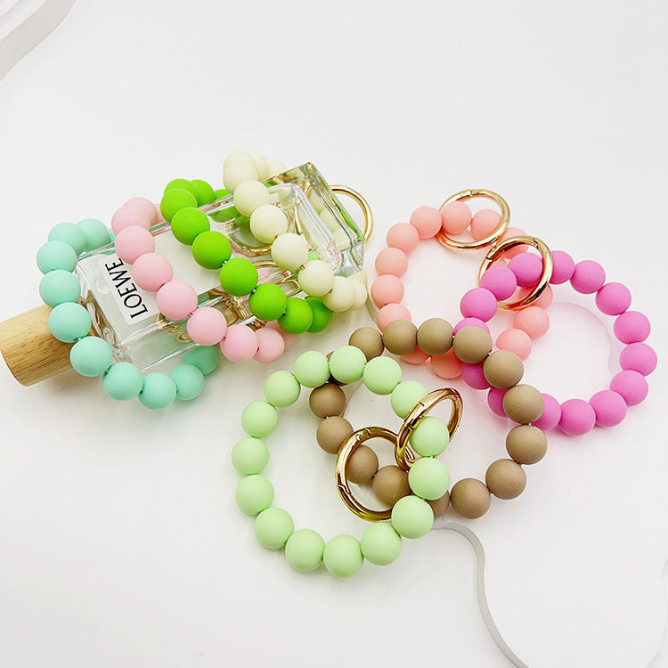 Wholesale Solid Color Silicone Handmade Beaded Wrist Keychain