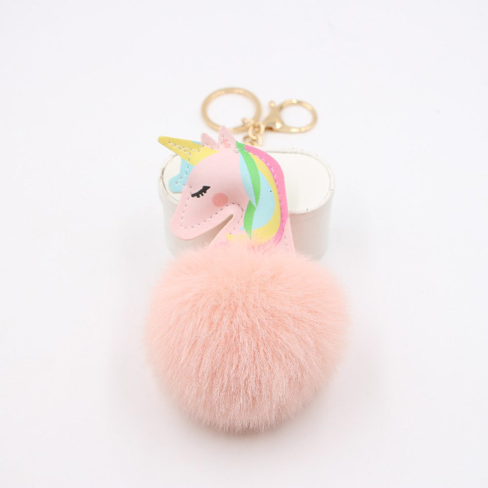 Llavero de pelota de pelota de pieles de unicornio de piel artificial al por mayor