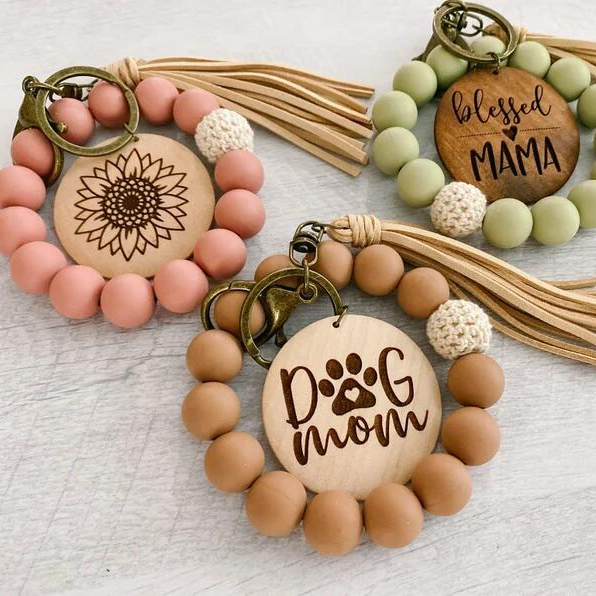 Letrero de madera en blanco al por mayor llavero de muñeca con cuentas de silicona