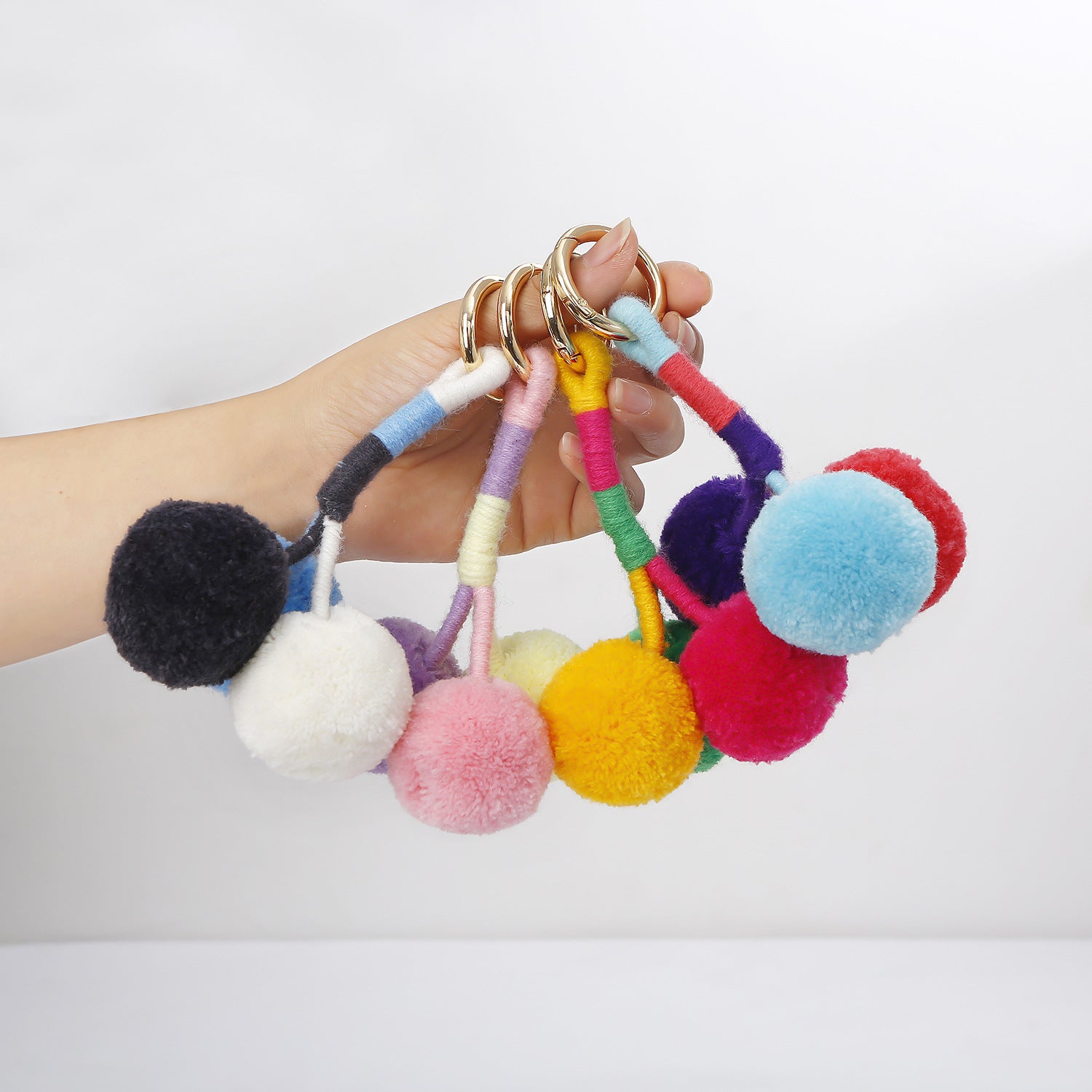 Llavero de aleación de bola de pelota de cabello tejido a mano al por mayor