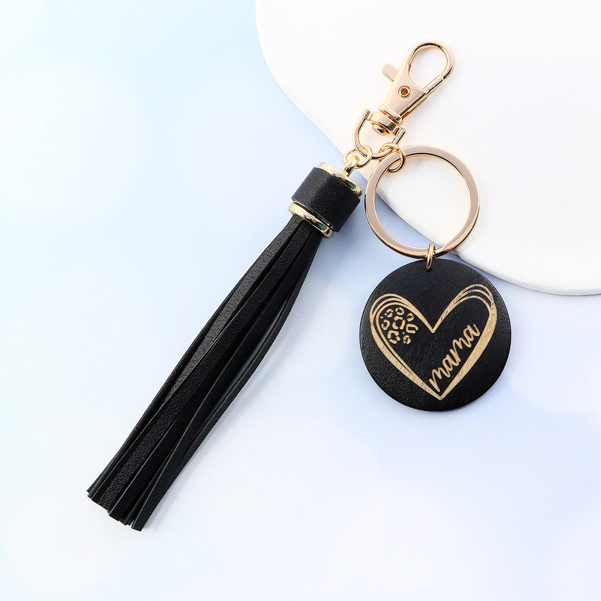 Día de la Madre al por mayor Love Round Wood Chip Mama Keychain