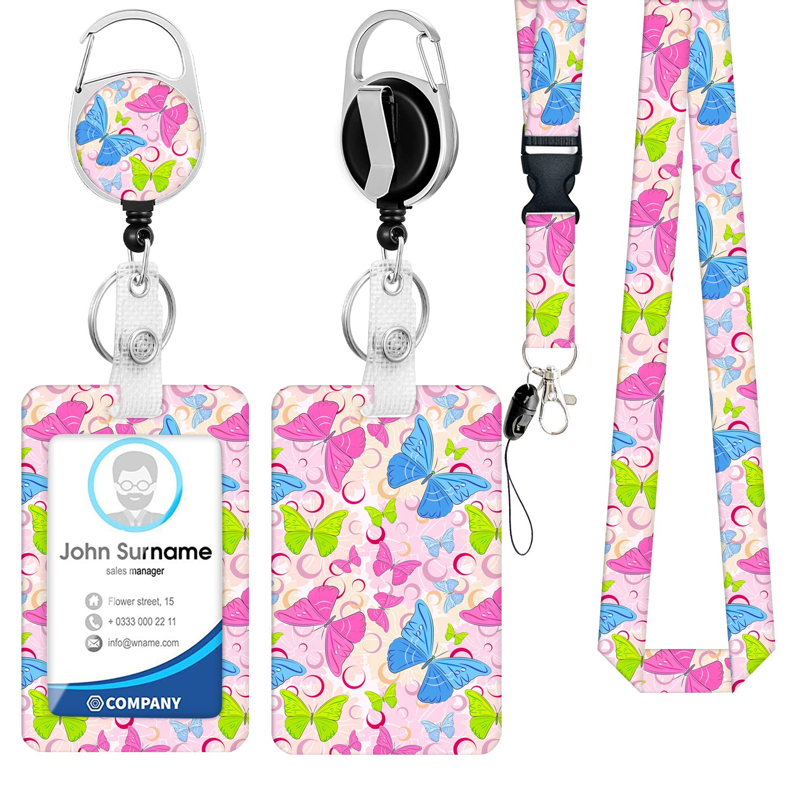Wholesale Round Zinc Alloy Butterfly Glue Easy-to-pull Flower Polyester Thermal Transfer Lanyard Printing Certificate Card Set