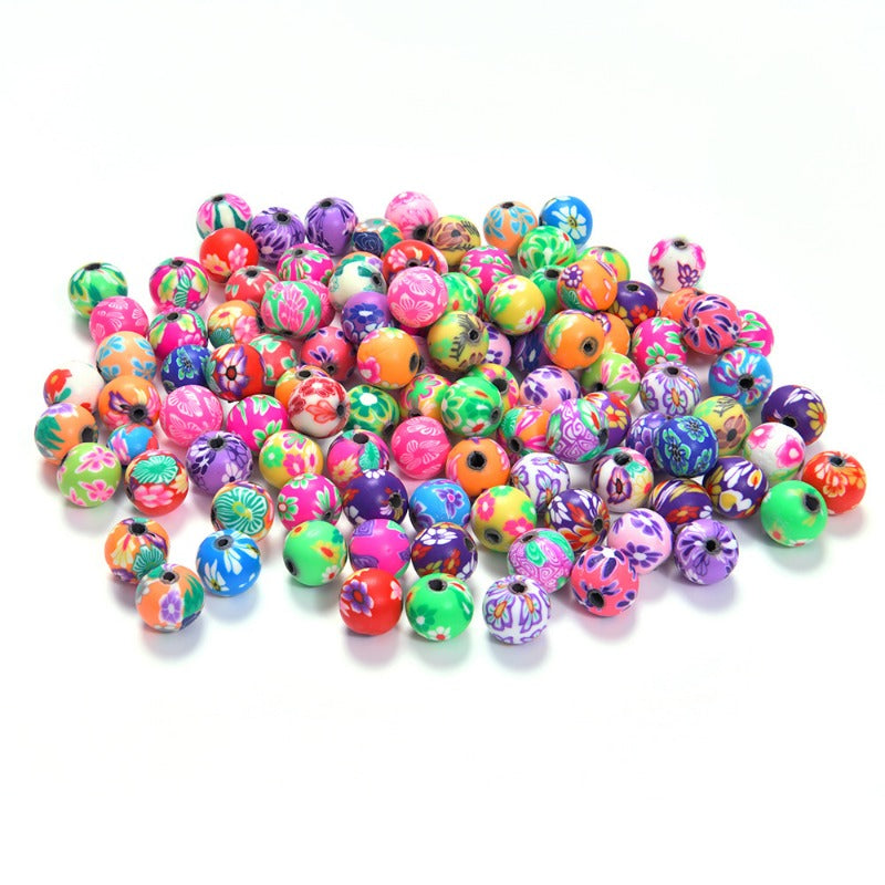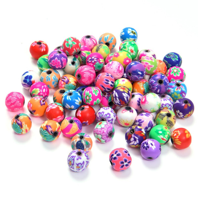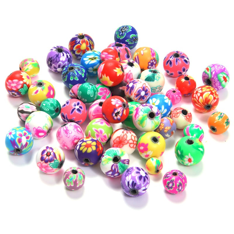 Wholesale 50pcs 6-12mm Printed Round Colored Clay Diy Beads