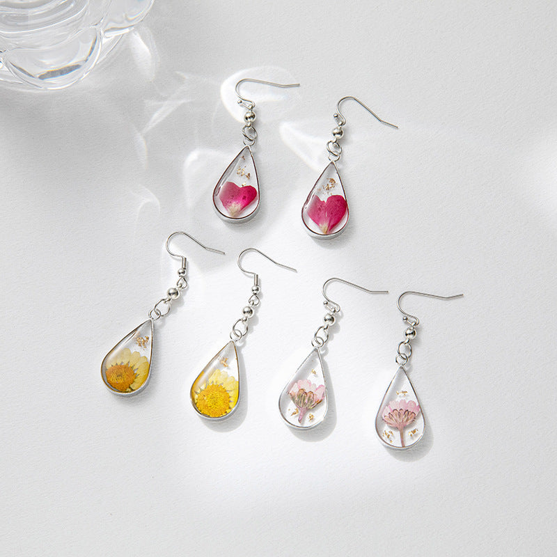 Wholesale 6pcs Fashion Teardrop-shaped Moonflower Dried Flower Earrings