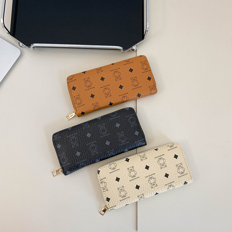 Wholesale Bear Print Single Zip Multi-Card Wallet