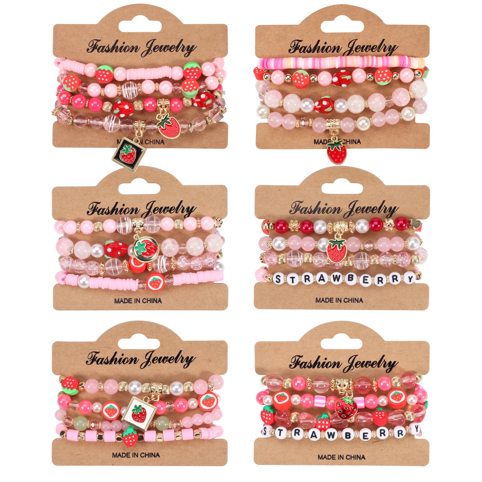 Wholesale Cartoon Cute Fruit Strawberry Pendant Glass Beaded Multi-layer Elastic Bracelet