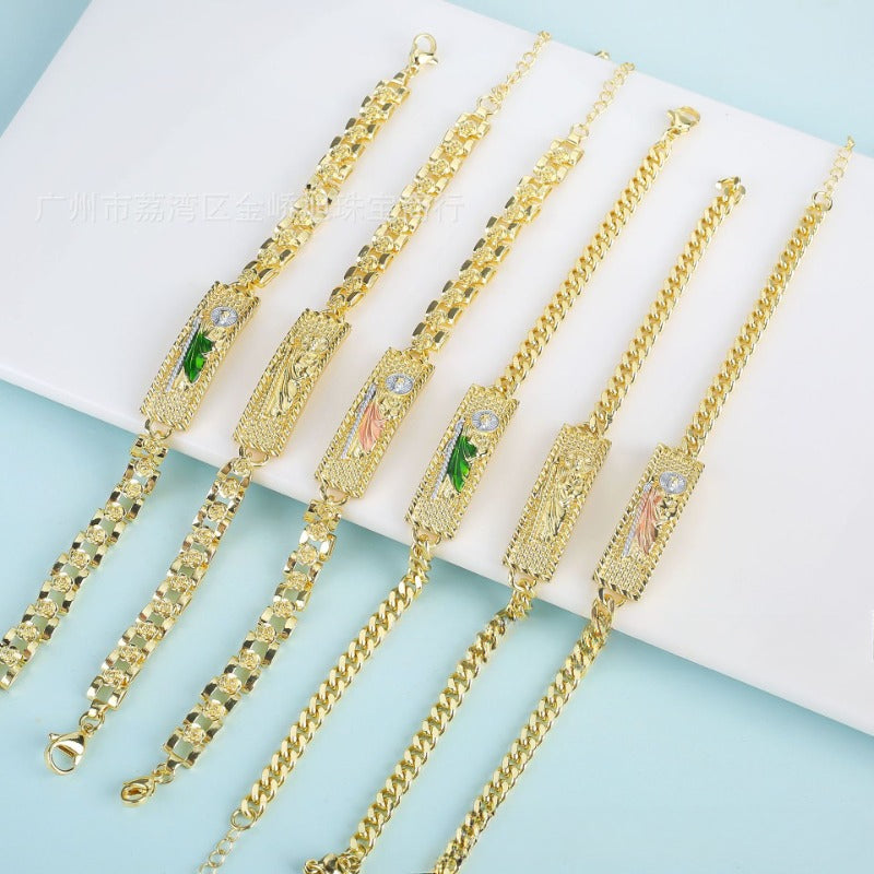 Wholesale Drip Oil Jesus Rose Cuban Metal Bracelet