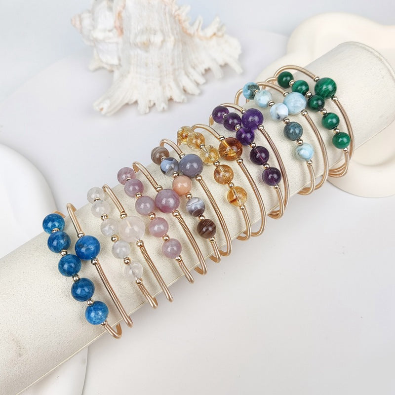 Wholesale Natural Crystal Blue Phosphorus Radiant Natural Stone Irregular Wrapped Silk Handmade Wrapped Wire Bracelet