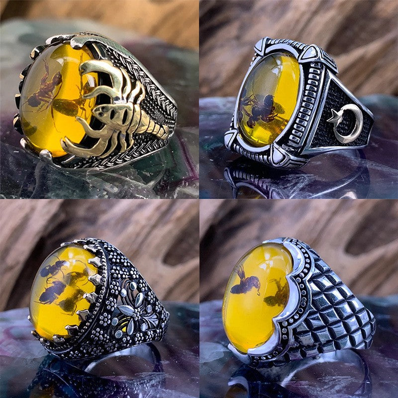 Wholesale Personalized Retro Two tone Black Agate Rings