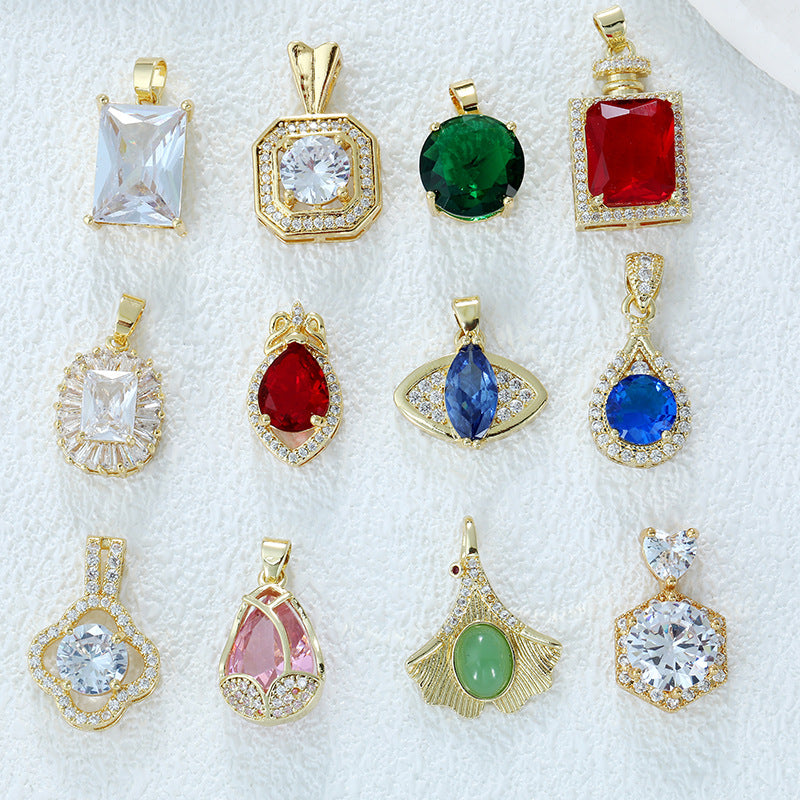Wholesale Real Gold Electroplated Color-preserving Zircon DIY Personality Flower Geometric Temperament Necklace Pendant