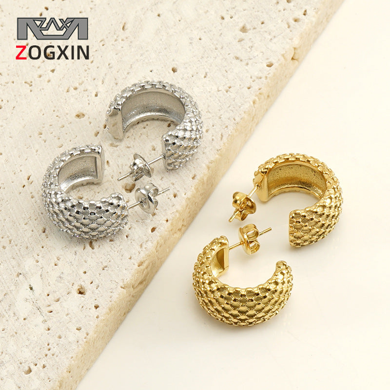 Wholesale Stainless Steel Fashion Polka Dot Simple Style C-Shaped Titanium Steel 18K Gold Earrings