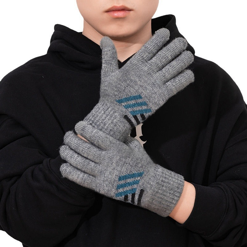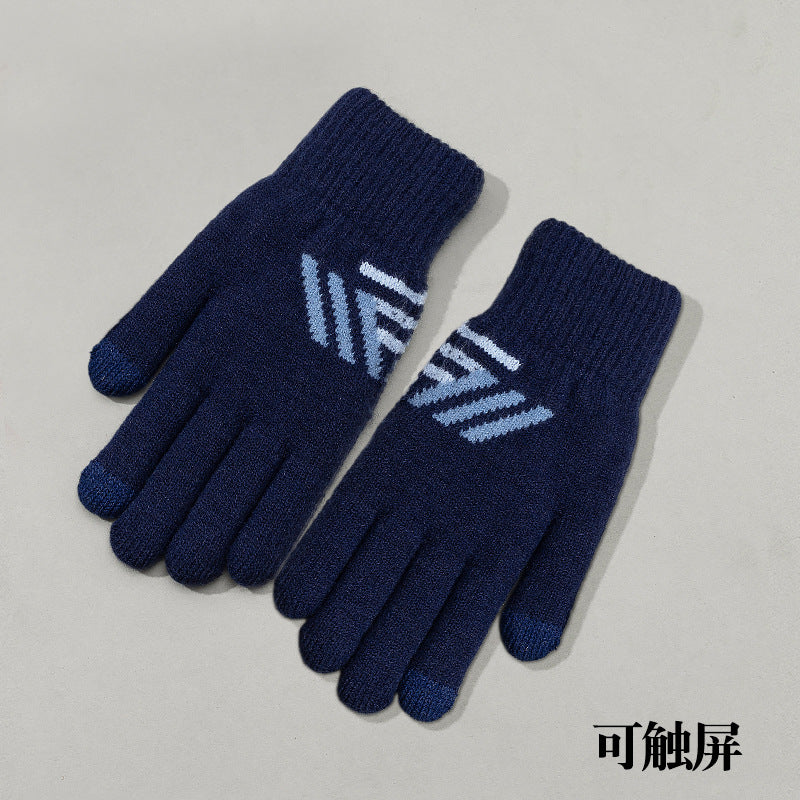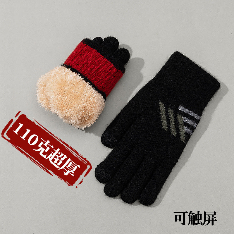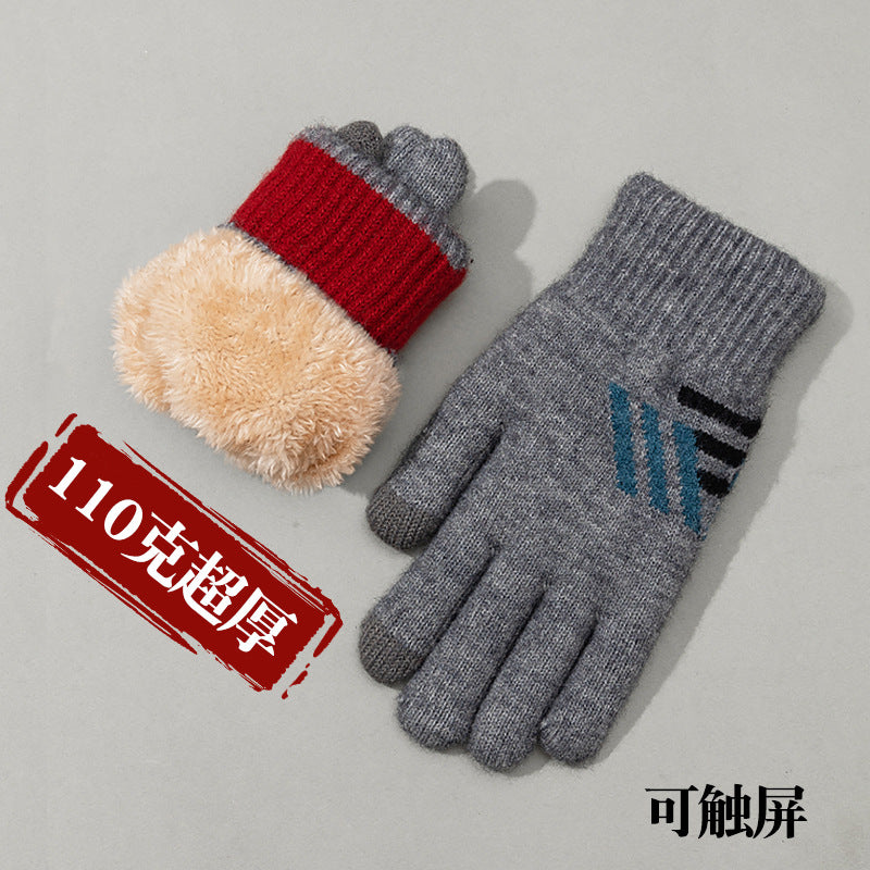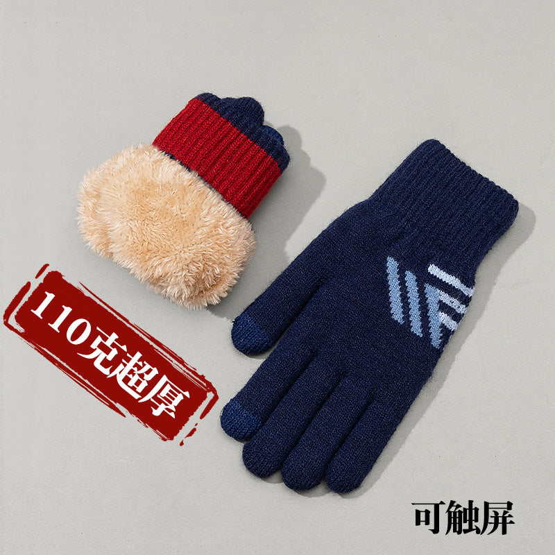 Wholesale Winter Riding Electric Bike Warm Windproof Cold Double Layer Thickened Knitted Touch Screen Wool Plus Velvet Gloves