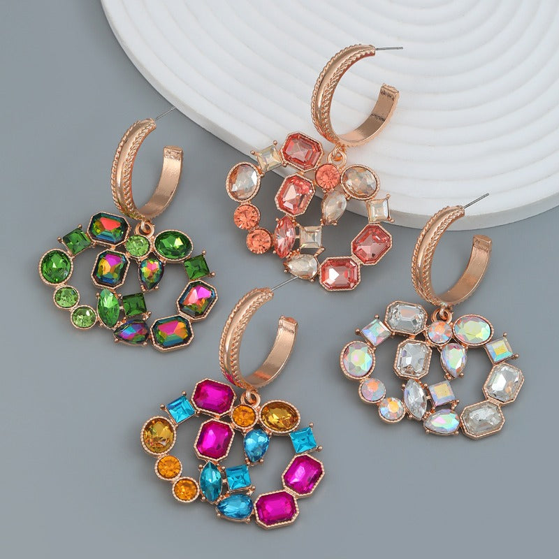 Wholesale Color Diamond Boho Party Gemstone Earrings