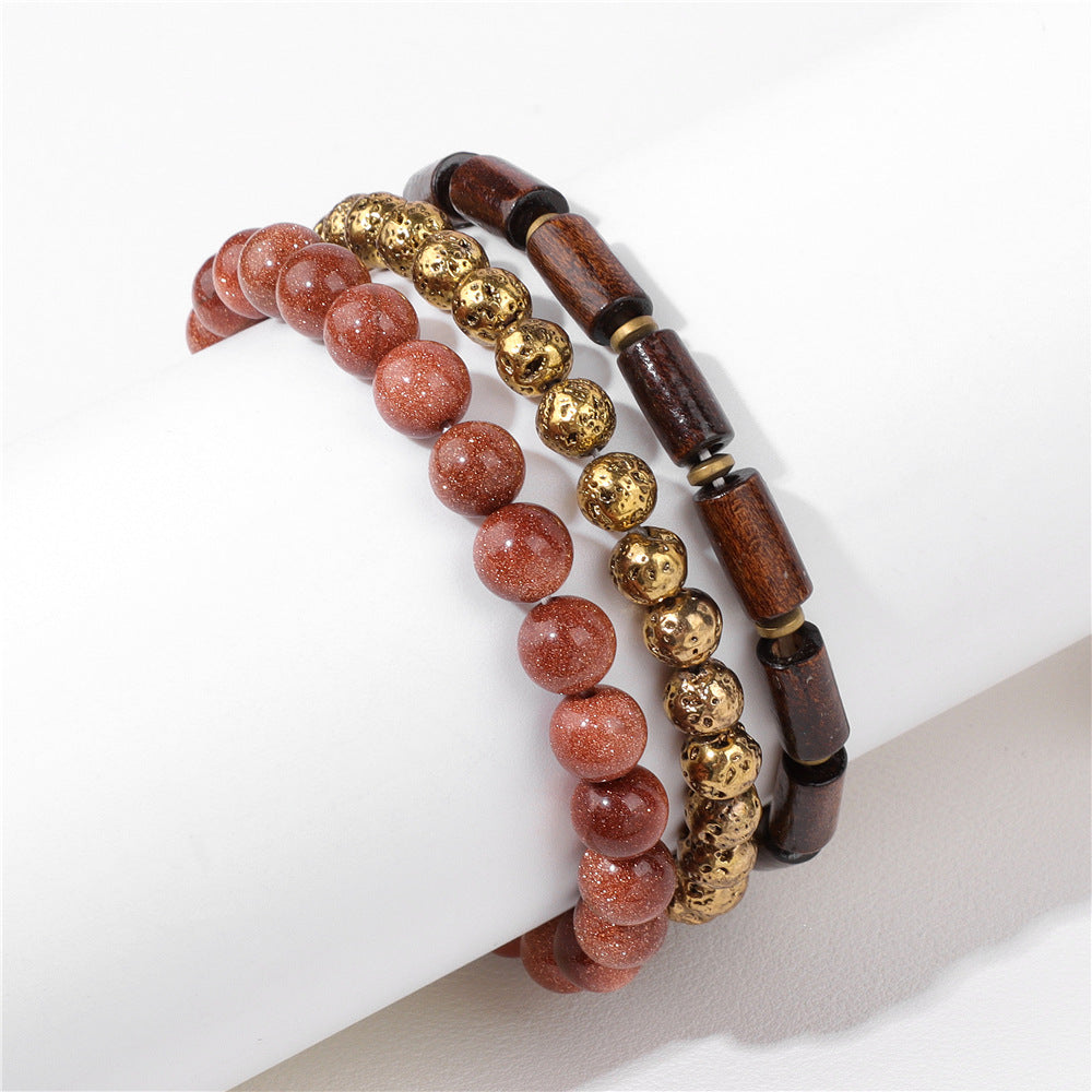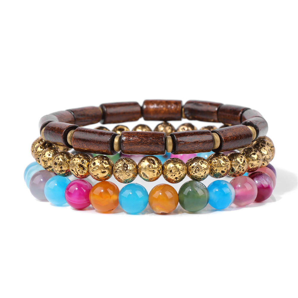 Cuentas de piedra natural al por mayor chapadas de madera de piedra volcánica con brazalete de ágata