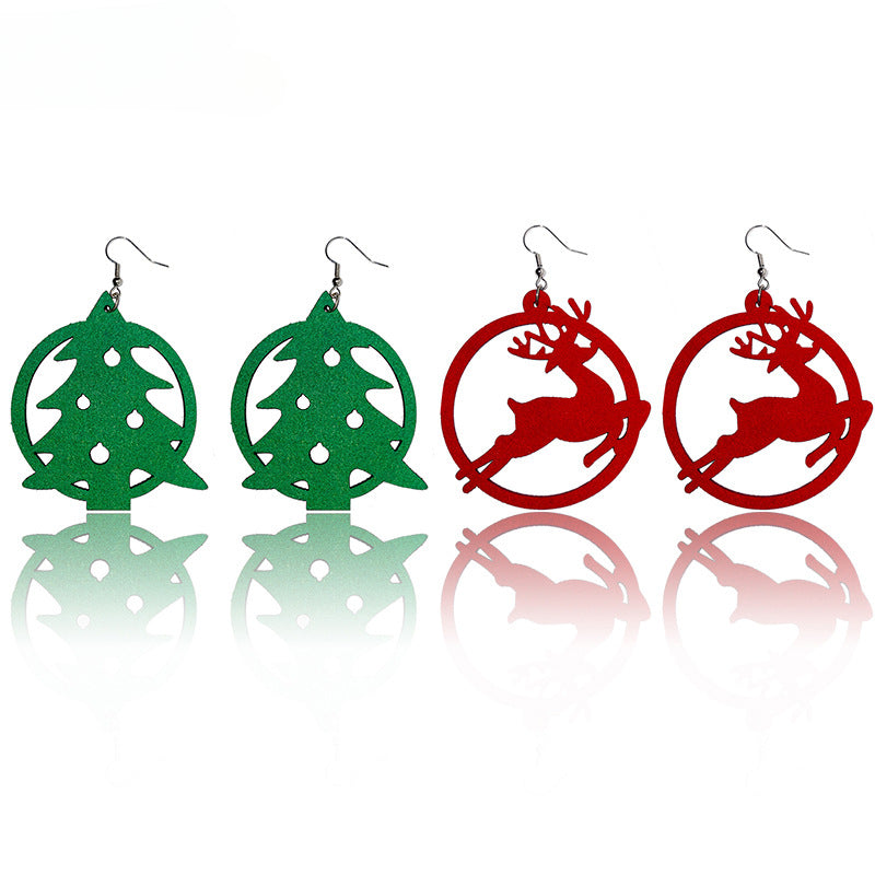 Wholesale 6 pairs/pack Christmas Tree Deer Leather Earrings