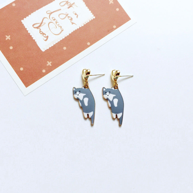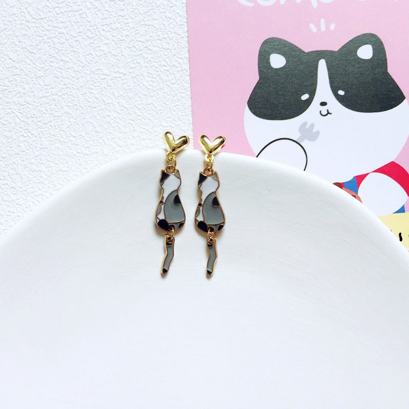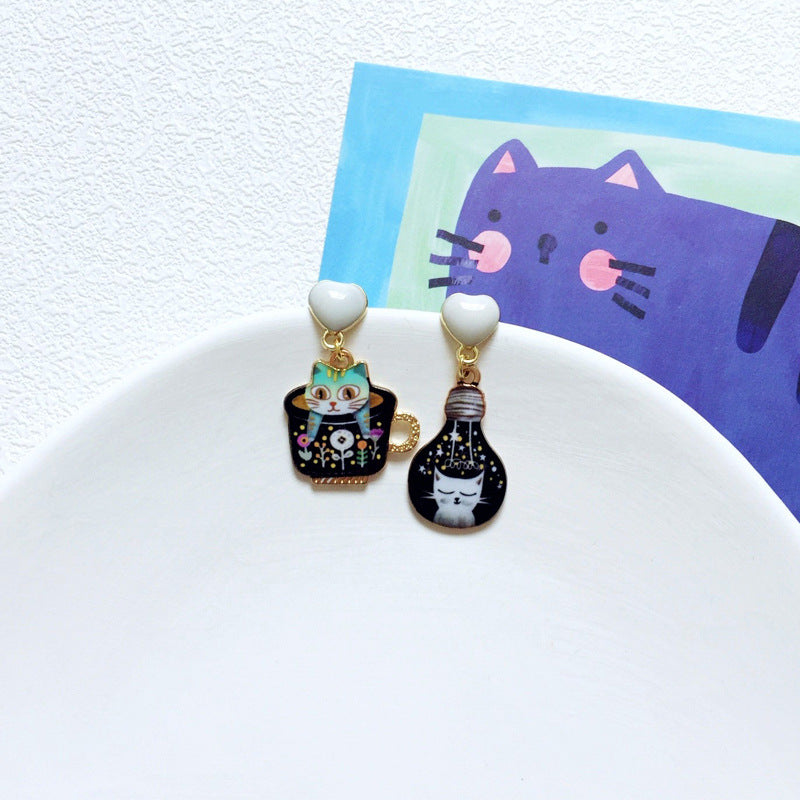 Wholesale Cartoon Cute Asymmetric Black and White Cat Earrings