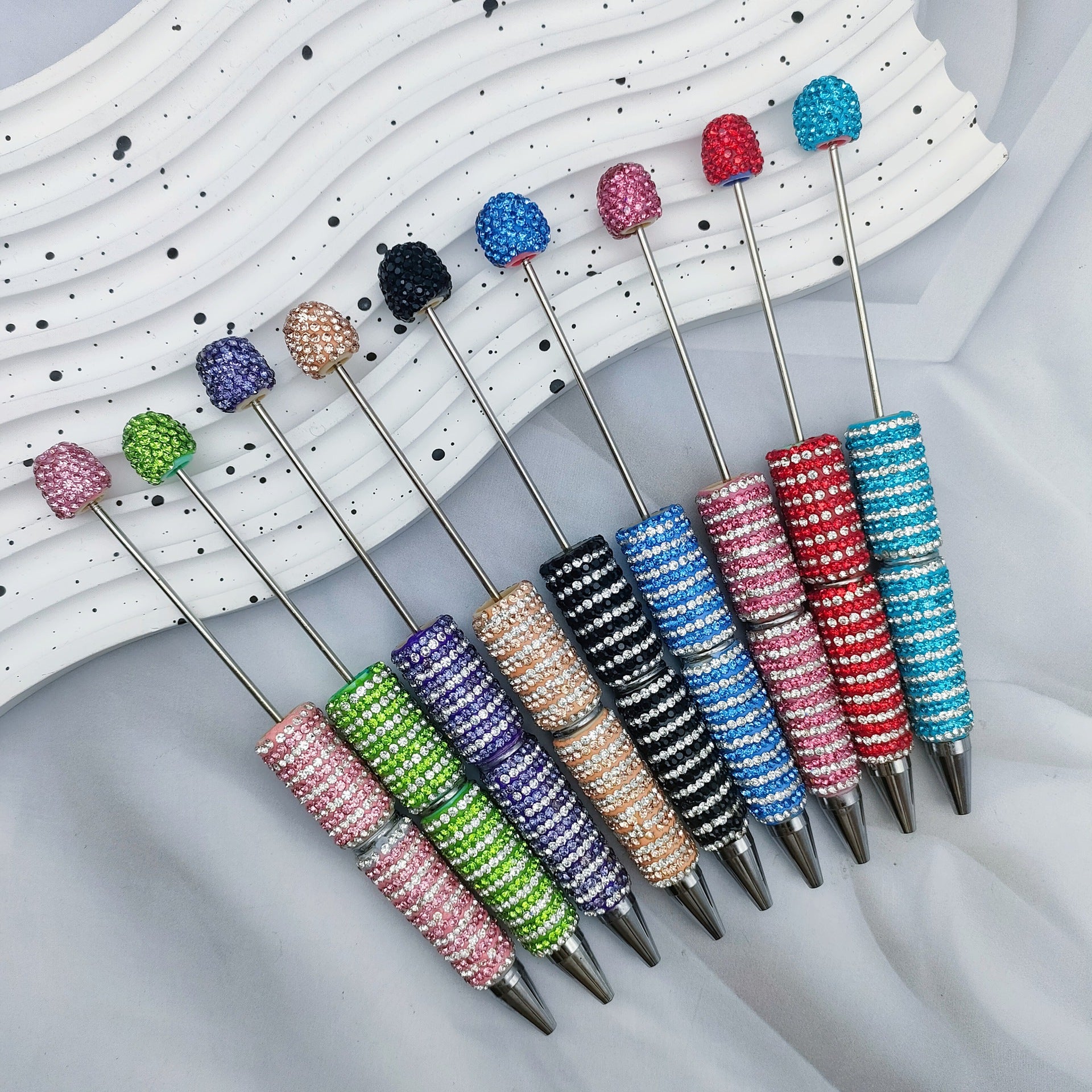 Wholesale Circular Textured Spiral Adorned Full Diamond-like Fancy Beadable Pens