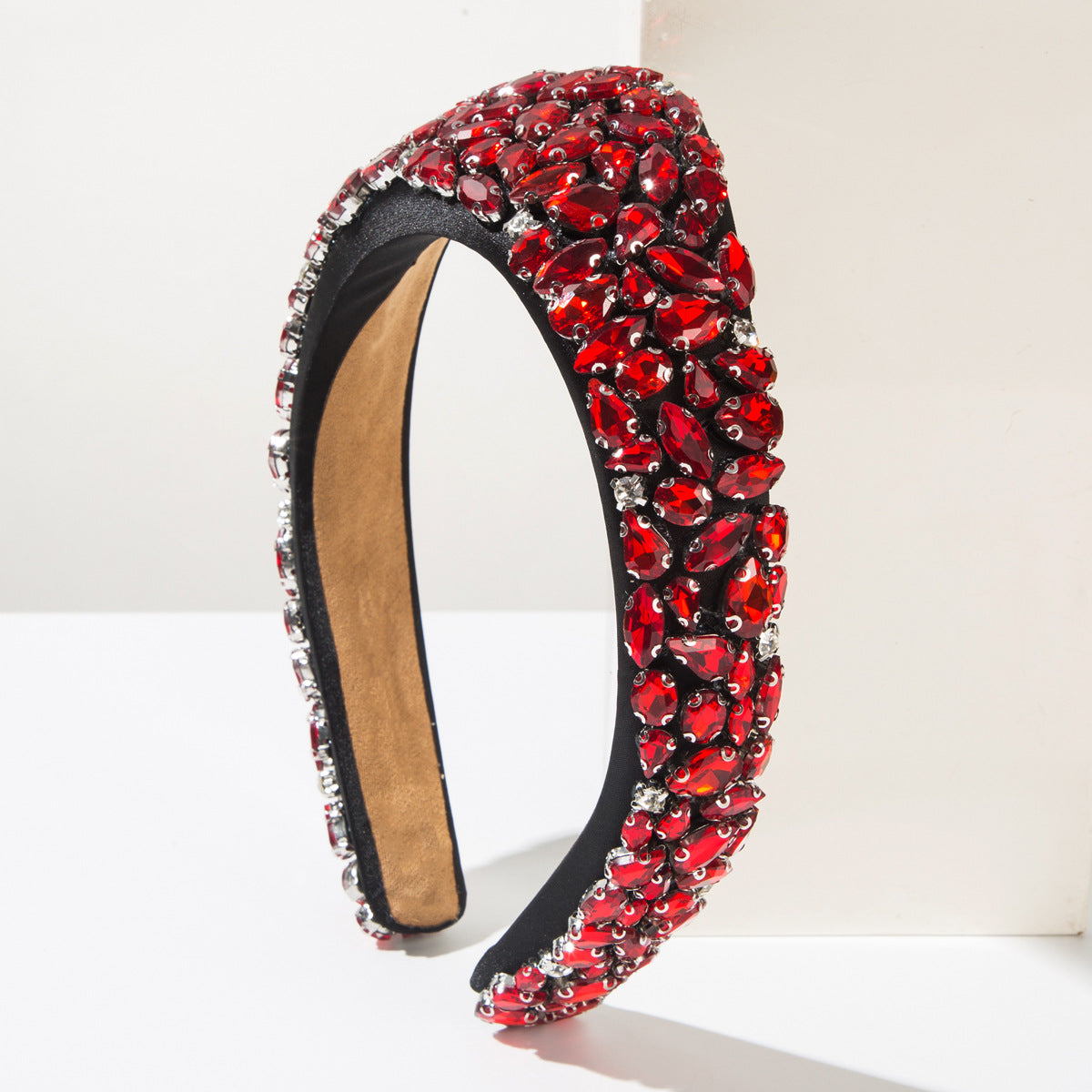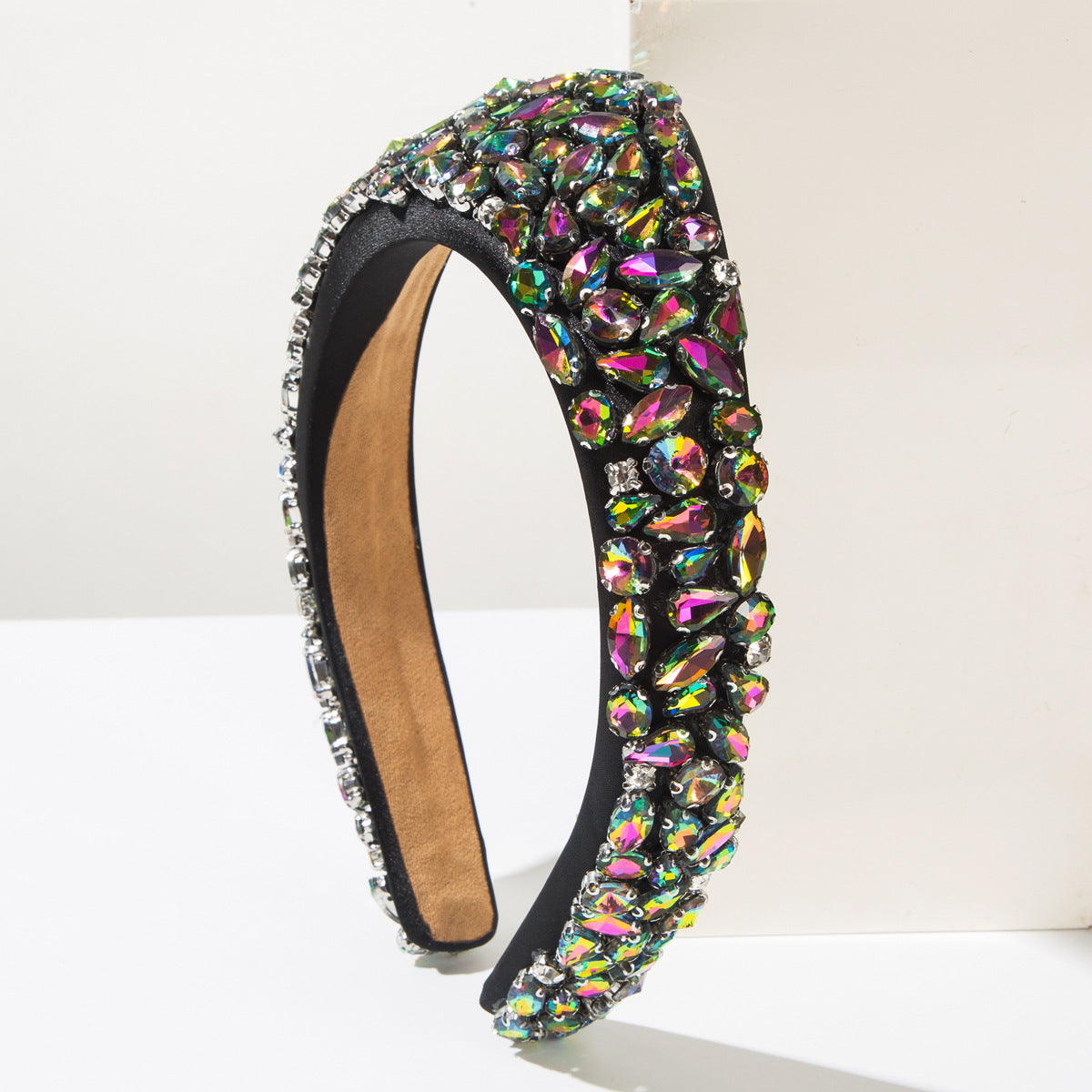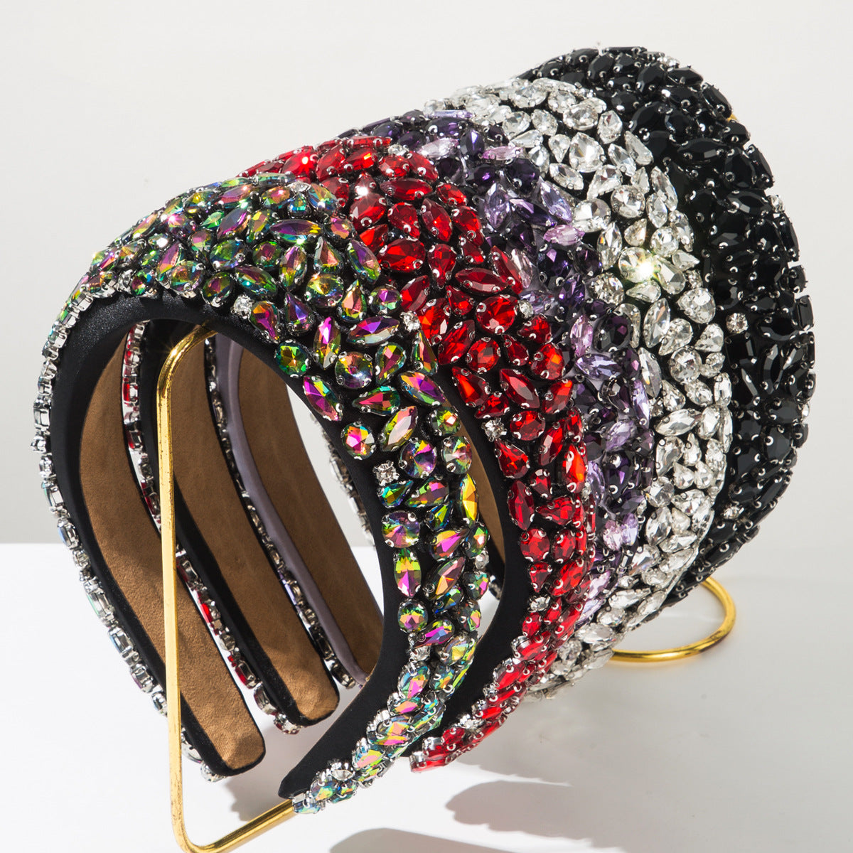 Wholesale Retro Baroque Glass Diamond Crown Wide Edge Headband