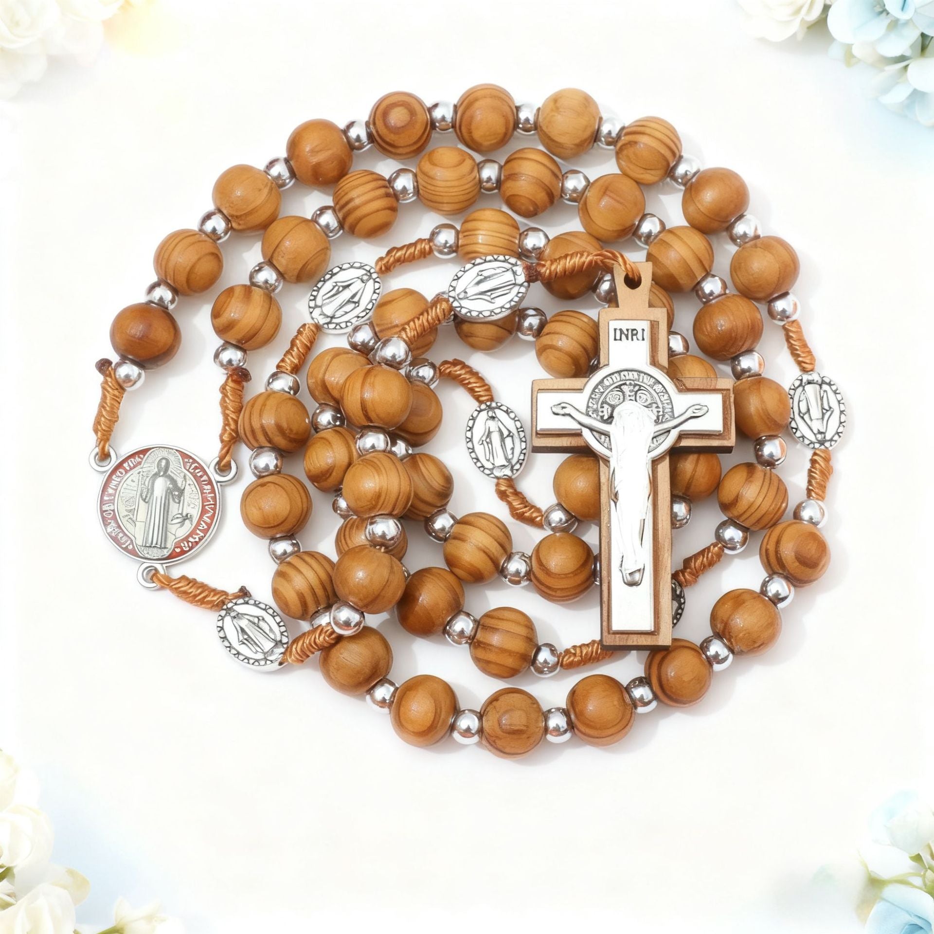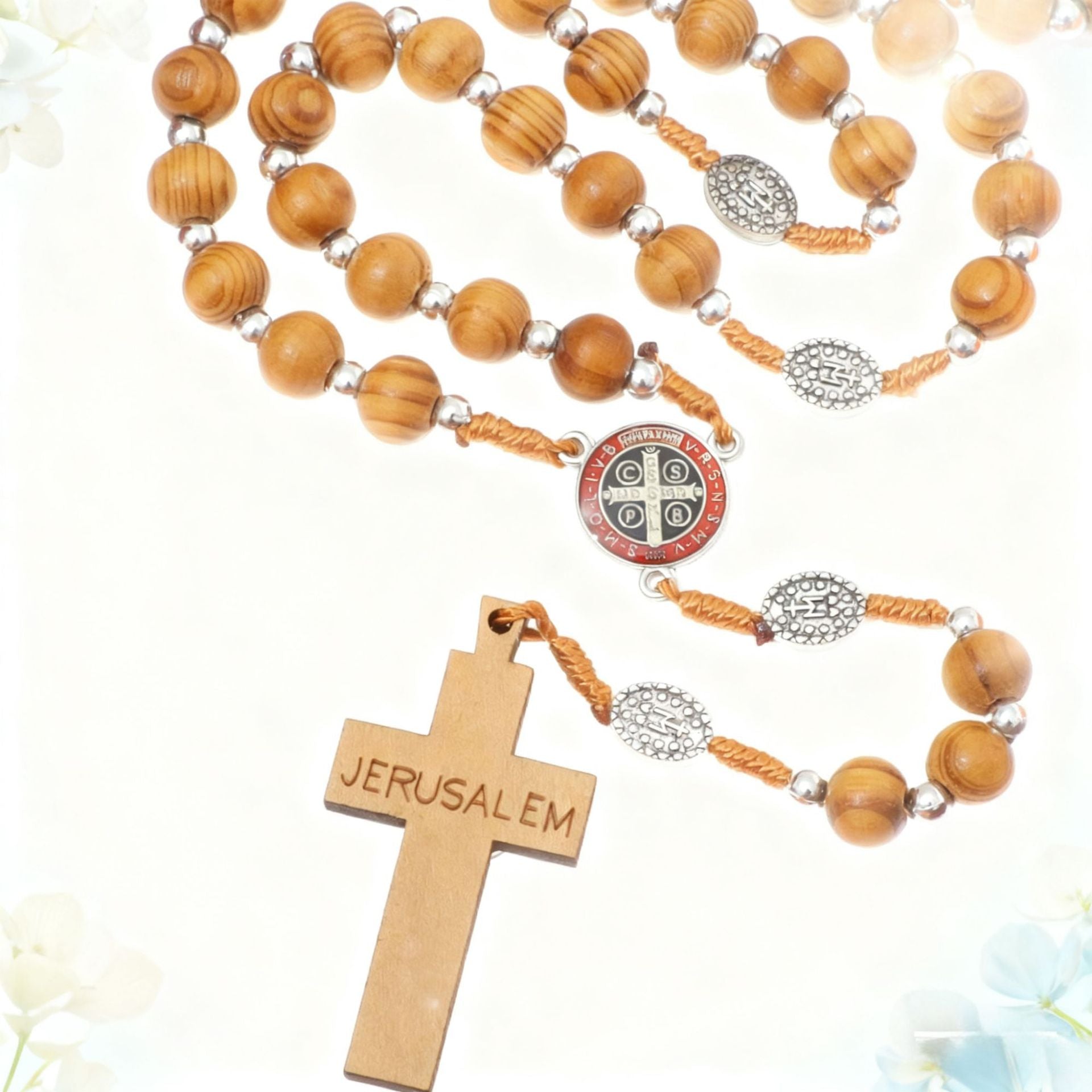 Wholesale Wooden Rosary Necklace 10mm Wood Color Cross