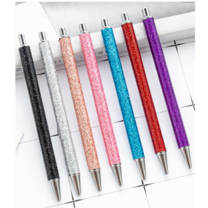 Wholesale Gold Powder Multicolor Metal Button Foreskin Pu Ballpoint Pen