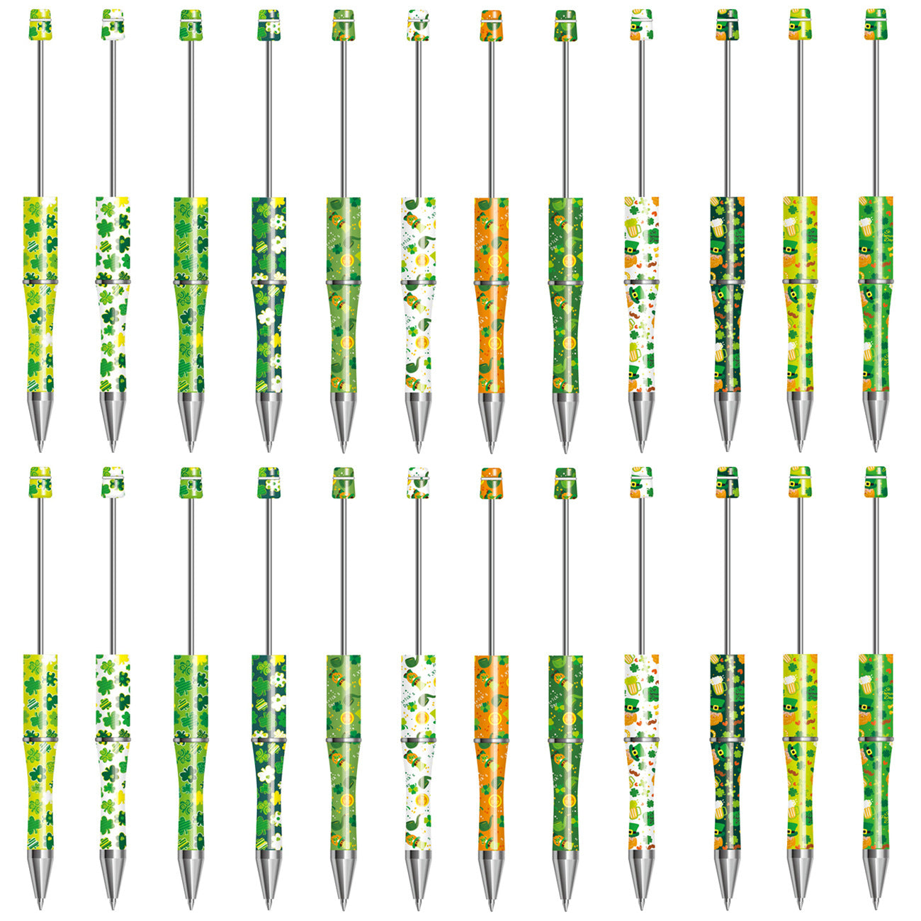 Wholesale Beadable Pens St. Patrick's Day Clover Plastic Pens DIY for Beaded
