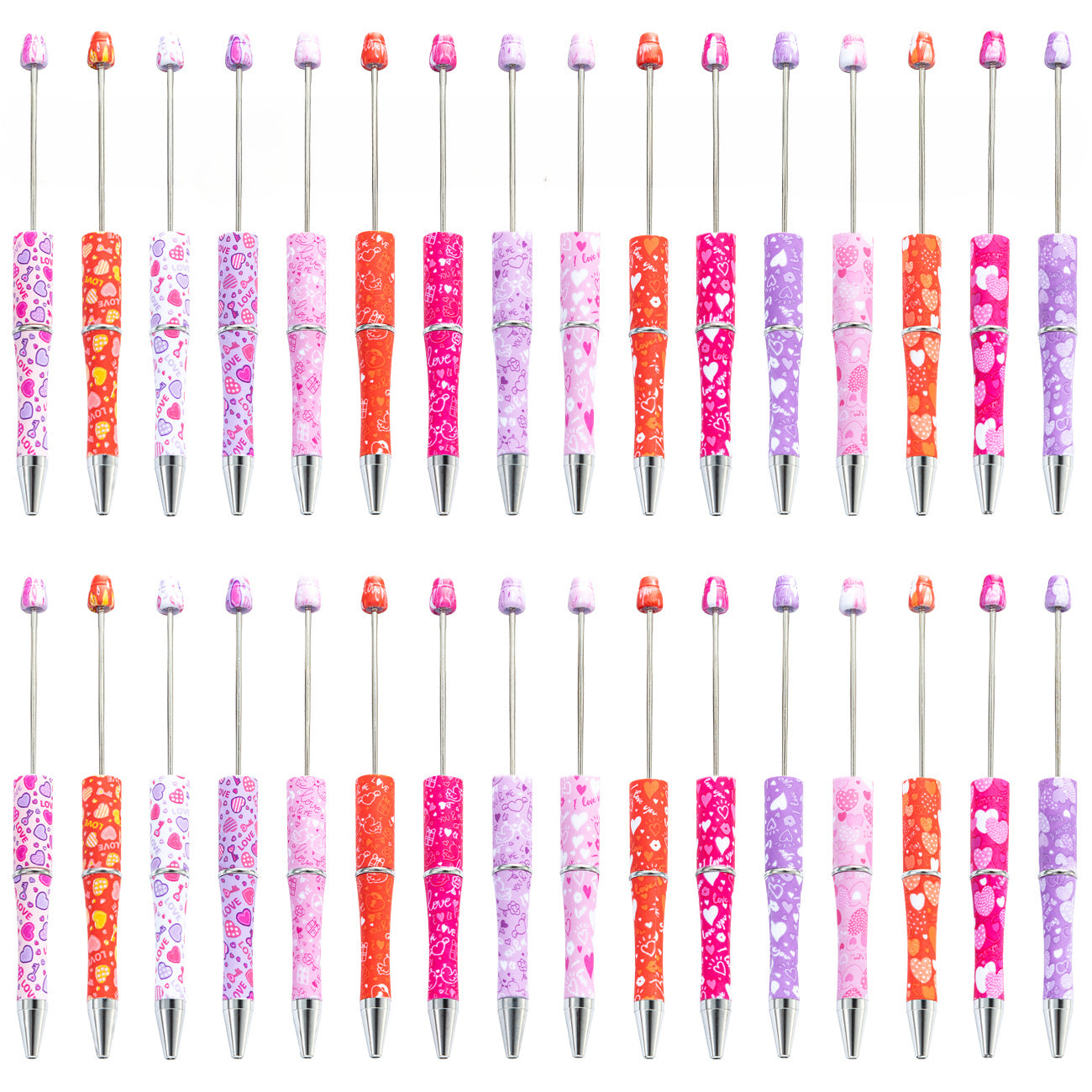 Wholesale Valentine's Day Plastic Beaded Pens DIY Beadable Pens