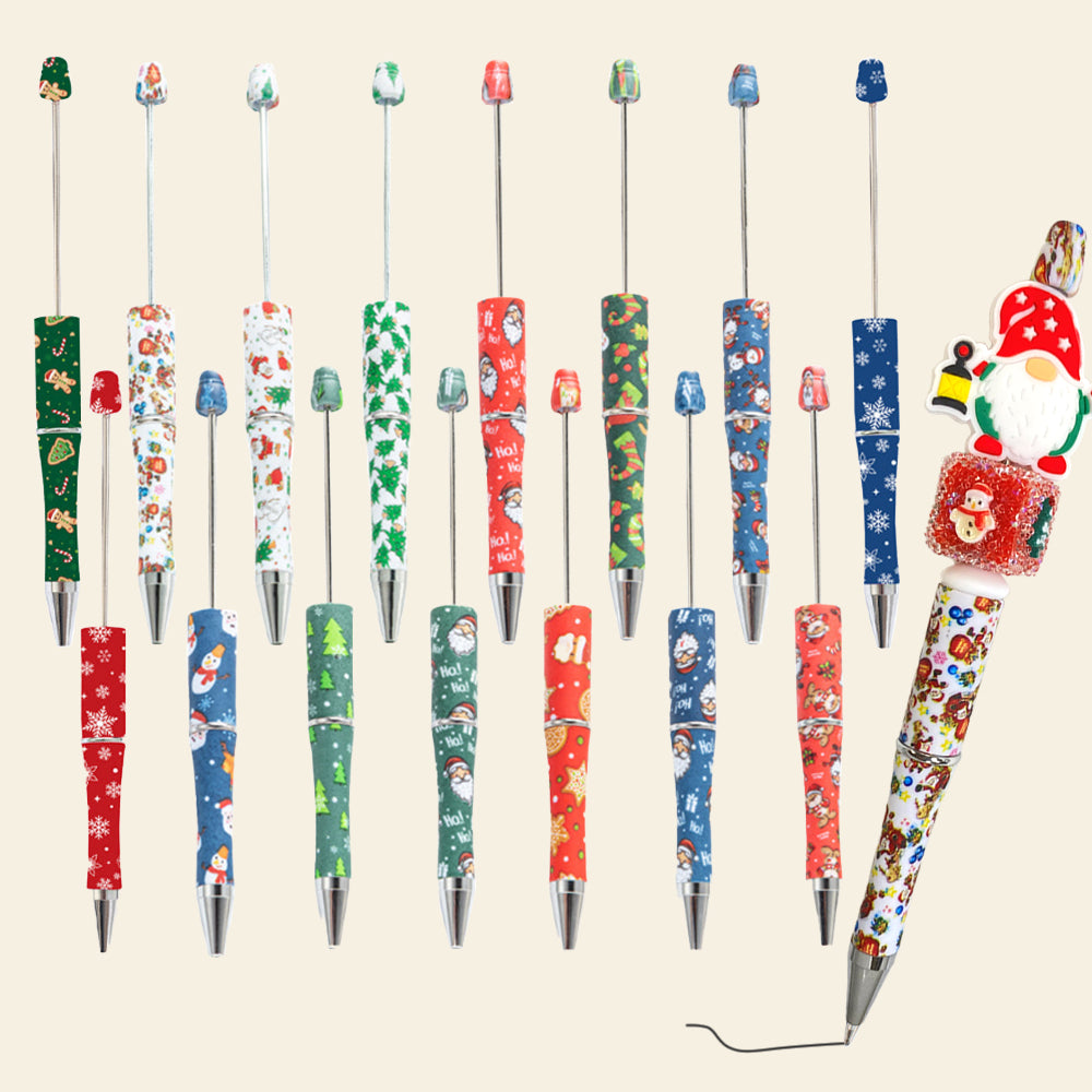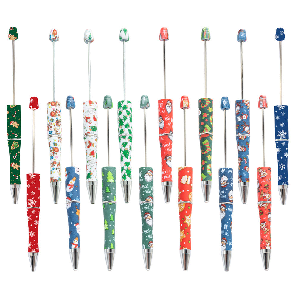 Wholesale Beadable Pens Christmas Print Plastic Pen DIY for Beaded