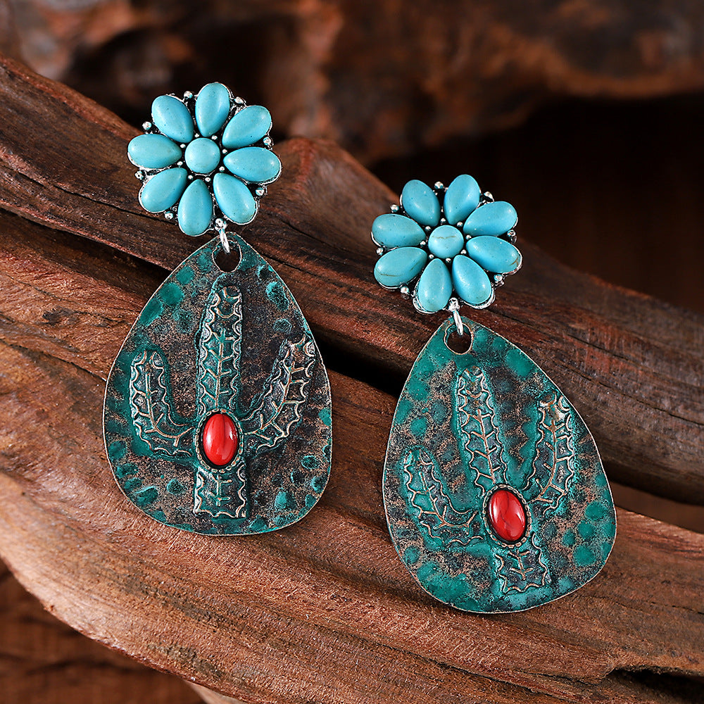 Wholesale Blue cactus inlaid turquoise teardrop earrings