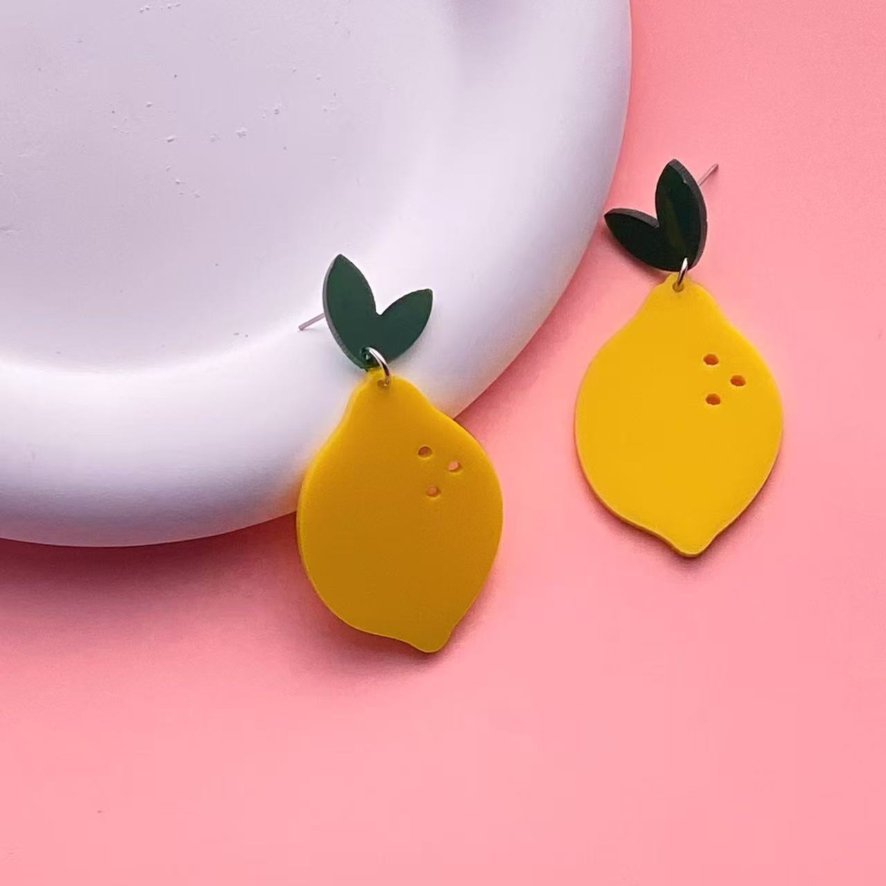 Wholesale Yellow Lemon Summer Vacation Acrylic Earrings