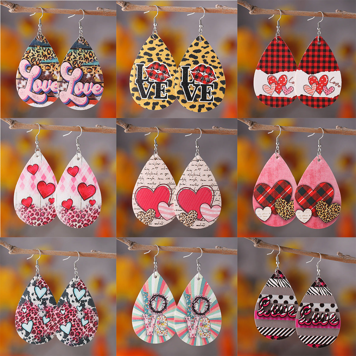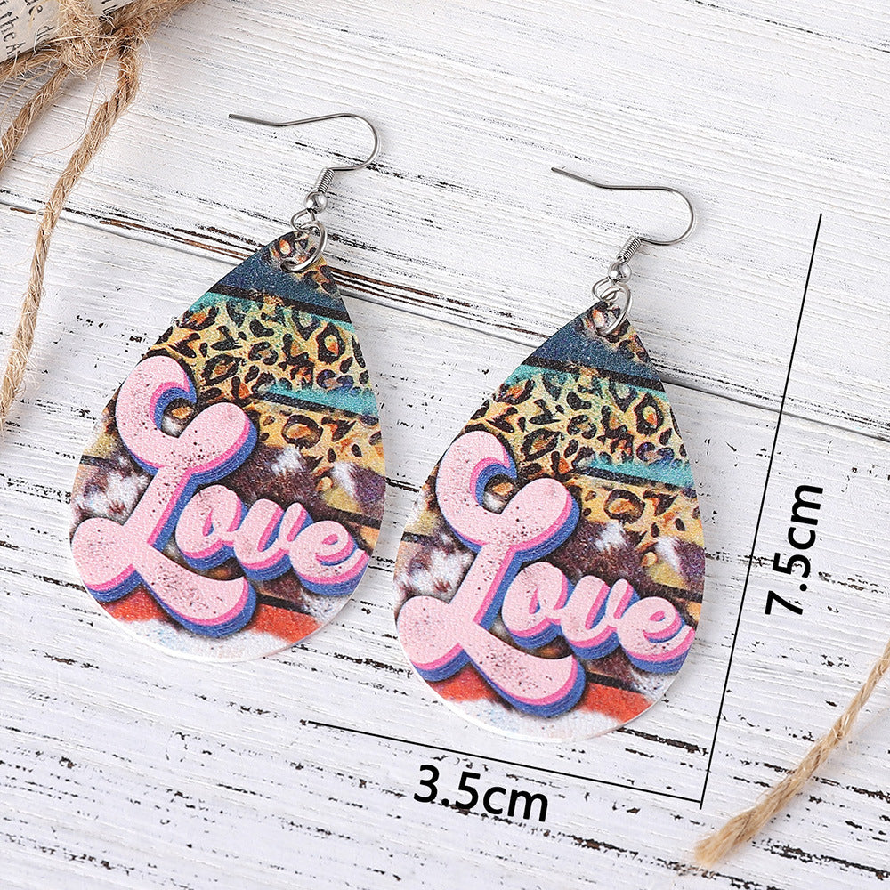 Wholesale Valentine' s Day Love Leopard Pattern Love Water Drop Earrings