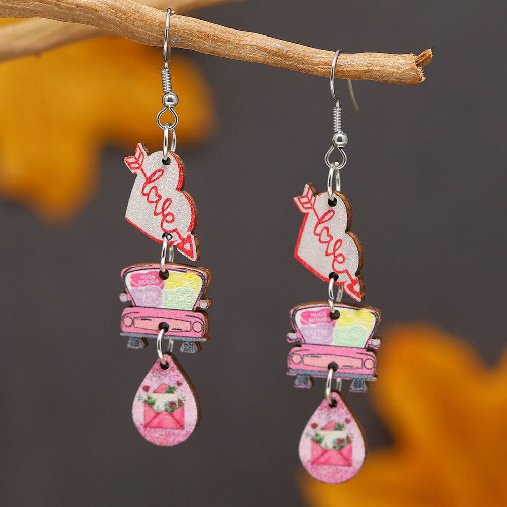 Wholesale Valentine's Day One Arrow Heart Piercing Truck Printed Wooden Earrings