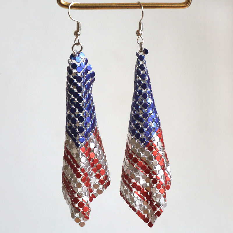 Wholesale 12pairs/pack American Flag Rainbow Leopard Print Metal Mesh Earrings