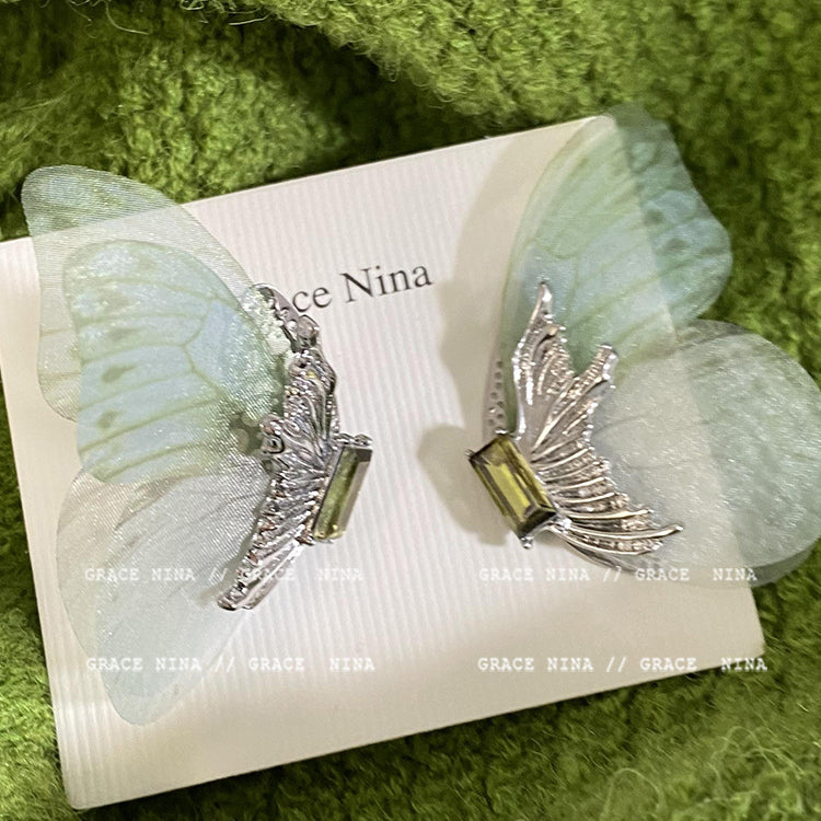 Aleación de borla de mariposa al por mayor/Pendientes plateados con chapado de oro/dorado