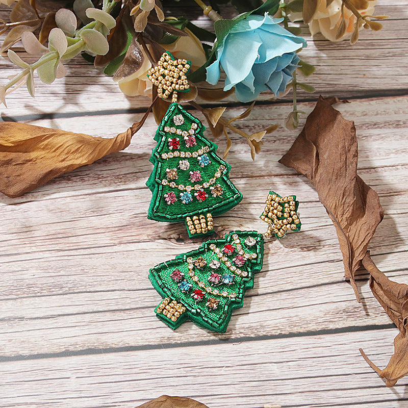 Wholesale Christmas Tree Style Rice Bead Earrings
