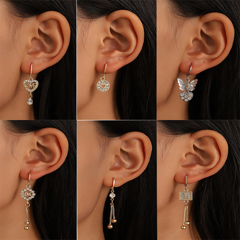 Pendientes De Aleación De Corazón De Alfabeto Geométrico De Metal al por mayor