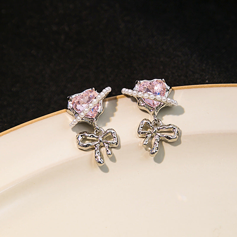 Pendientes de aleación de perlas con aguja plateada al por mayor
