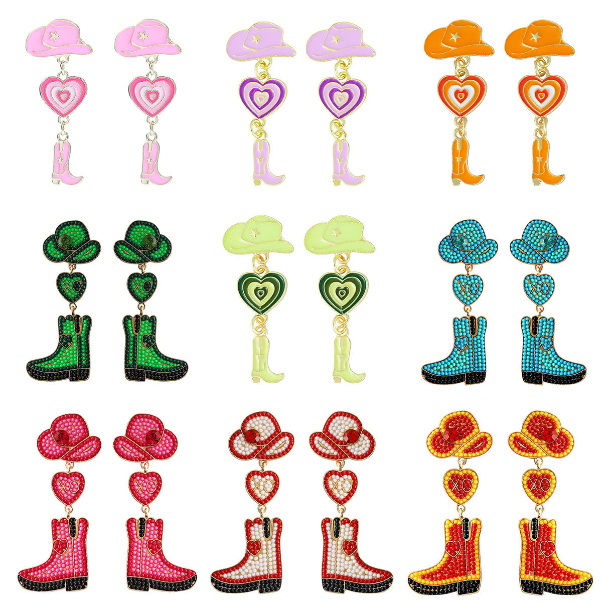 Wholesale Diamond Studded Denim Boots Zinc Alloy Earrings