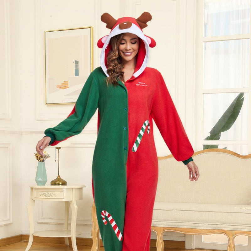 Wholesale Autumn and Winter Polar Fleece Animal Cartoon One-piece Cute Deer Hooded Pajamas