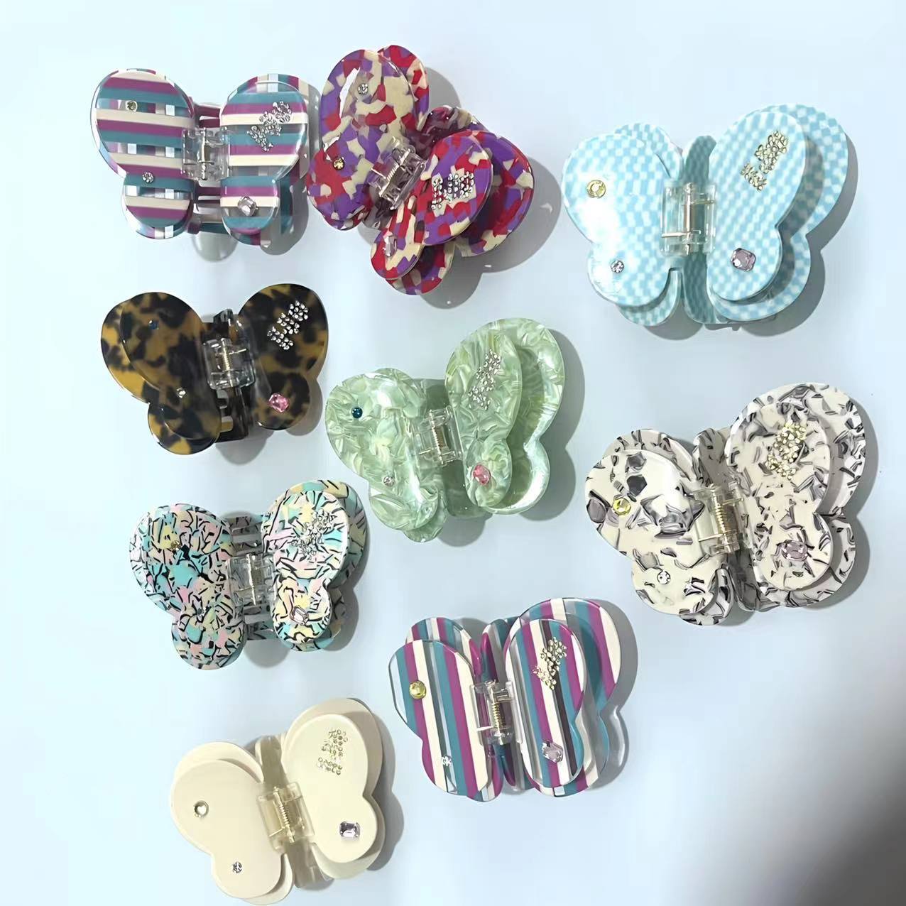 Wholesale Acetic Acid Rhinestone Hairpin Butterfly Clip Girl Shark Clip