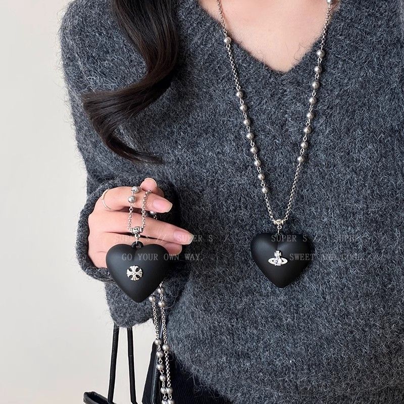 Wholesale Black Love Cross Sweater Chain Long Necklace